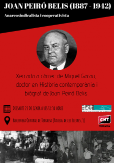 Deixem aqui l'audio de la xerrada que es va realitzar el 25 de gener del 2020 a la bct a càrrec de Miquel Guerau doctor en Història contemporània i biògraf de Joan Peiró Belis. La xerrada és un interessant repàs a la seva biografia explicant la trajectòria com a secretari general, com a cooperativista i com a ministre d'indústria fins a la seva execució per part de l'Estat.